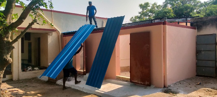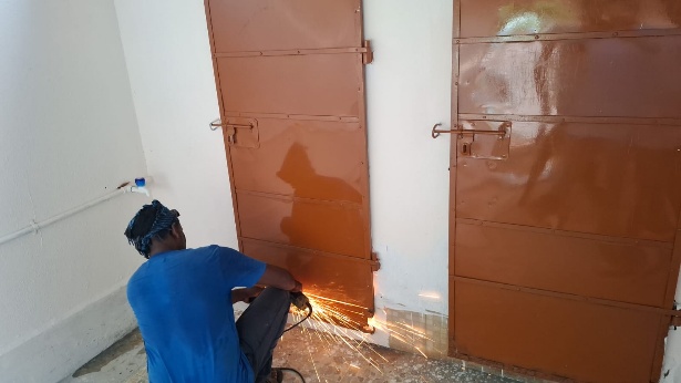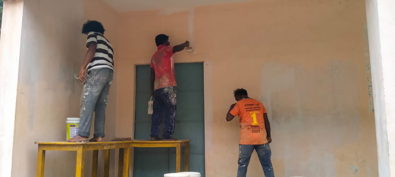 Since the school lacked handwashing facilities, we added new washbasins. The damaged doors were repaired using welding to fix cracks and structural issues, followed by a fresh coat of paint to enhance their appearance. New roof sheets were installed. The surrounding area also received a complete repaint.