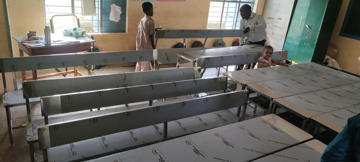PUMS Ganalapadi is a school with over 200 students studying from class 1 to 8. The winning team from Grade 8 requested for new tables and benches to be provided for their classroom. The metal furniture was delivered to the school in August 2025.